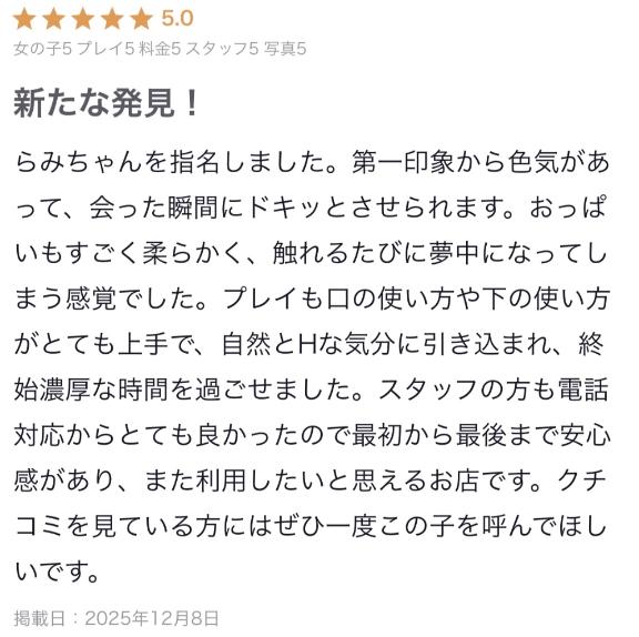キャバ嬢として磨かれた華やかな立ち振る舞いと、キレイ系のビジュアルがひときわ存在感を放つ彼女。業界未経験ながら、物怖じしない性格と芯の強さが魅力で、持ち前のSっ気と攻める姿勢に思わず惹かれると思います。丁寧な言葉遣いと落ち着いた雰囲気が大人の余裕を感じさせつつ、ふと見せるツンデレな一面も人気の理由。唯一無二の世界観を持つ、当店注目の逸材です。